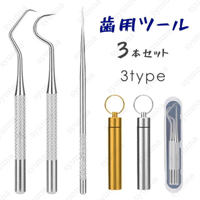 ミニ 歯石取り器具 (br45#) 日本国内当日発送 2type 歯用ツール 自宅用 3本セットケース付き デンタルツール ステンレス製 ヤニ 歯垢取り 口臭予防 歯石取り