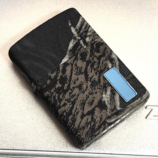 ZIPPO本体に装飾されたメタルには、当時のまま青いフィルムが貼られています。
