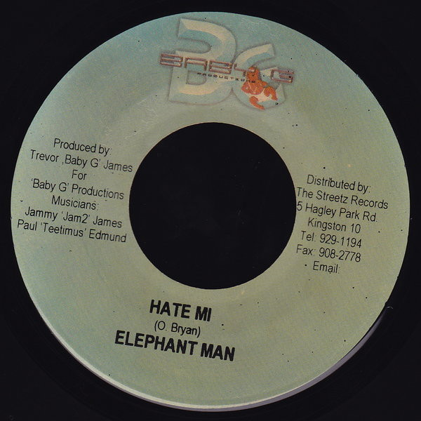 【中古】ジャマイカ7” Elephant Man Hate Mi NONE Baby G Productions /00080