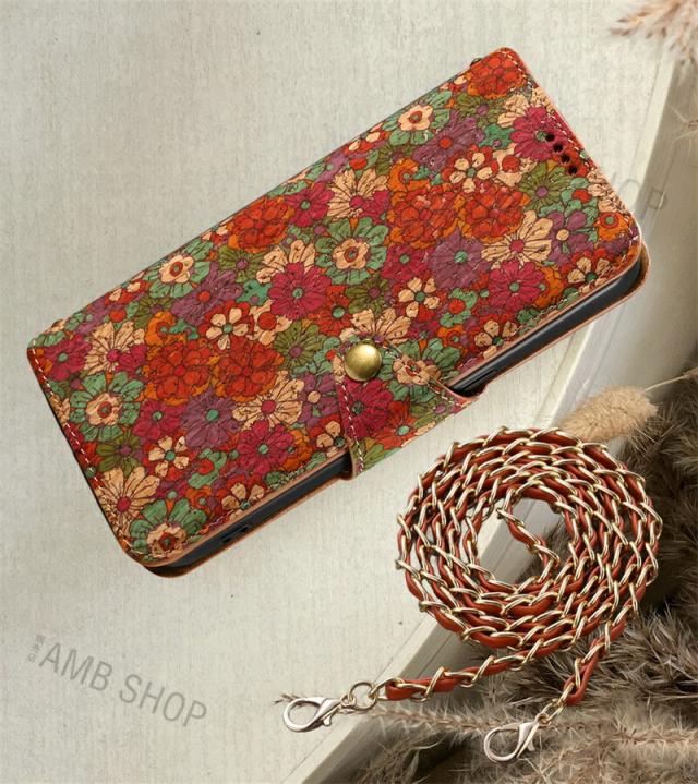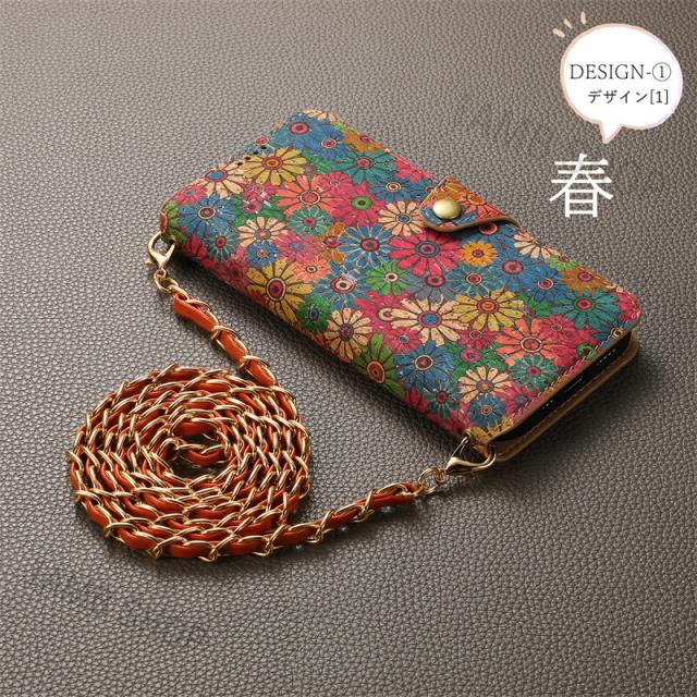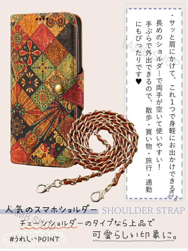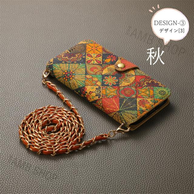 和風テイストを取り入れたショルダーストラップ付きの手帳型スマホケースです。