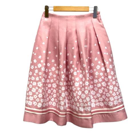 【中古】エムズグレイシー M'S GRACY スカート フレア タック フラワー 小花柄 ひざ丈 36 ピンク レディース