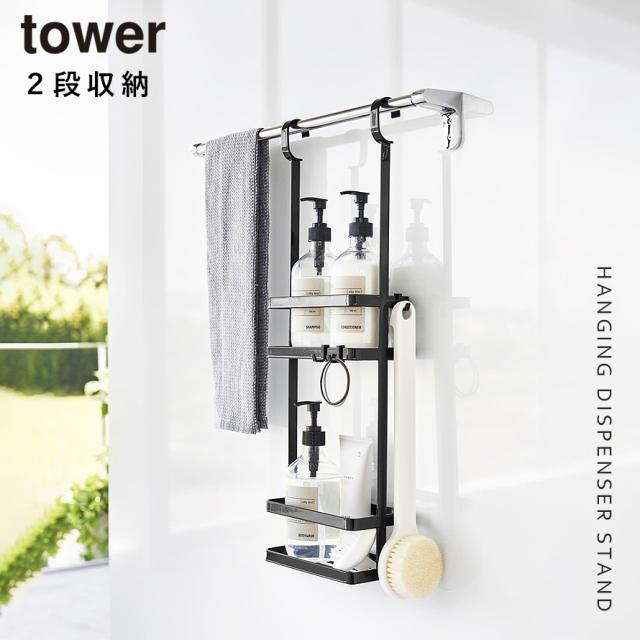 引っ掛けディスペンサースタンド タワー 2段 山崎実業 tower シャンプーラック シャワーラック おしゃれ モノトーン ホワイト ブラック