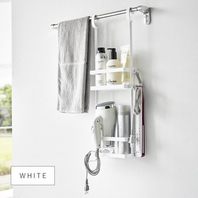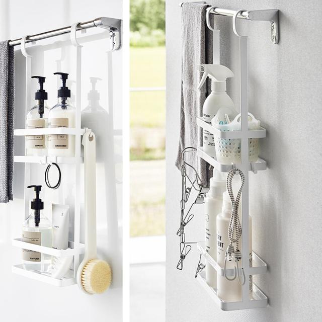 洗面所ではヘアースプレー、ドライヤー収納としてや、ランドリーボトルなどの洗濯用品の収納にもおすすめです。