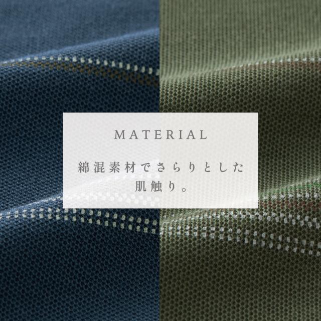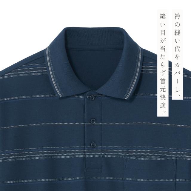 前身頃は爽やかなロングピッチのボーダープリント柄。背中側は無地になります。衿先には高級感のあるお洒落なジャガードライン入り。