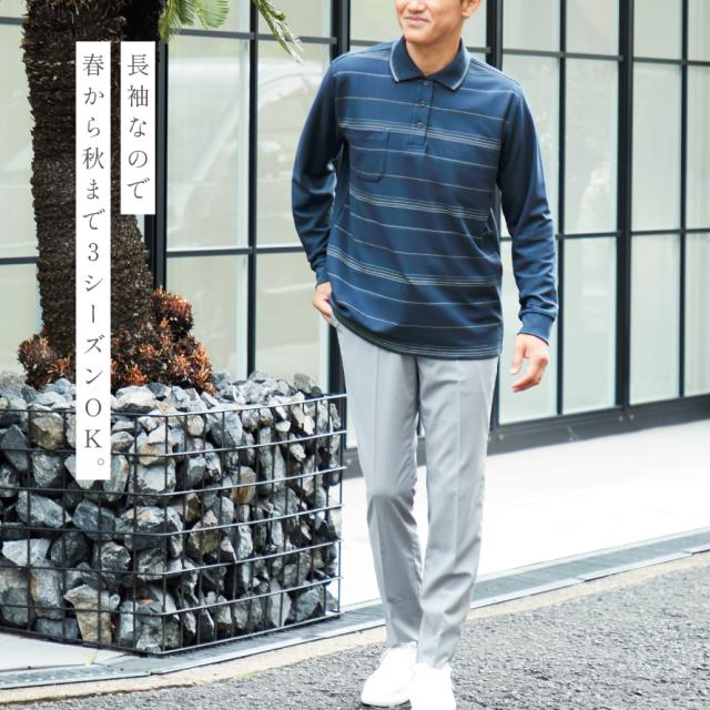 ポロシャツ メンズ 長袖 薄手 綿 ボーダー uvカット 薄手 胸ポケット ボーダーポロシャツ プリント柄メンズ長袖ポロシャツ M L LL 大きいサイズ ゆったり 50代 60代 70代 男性 シニア 紳士 ファッション