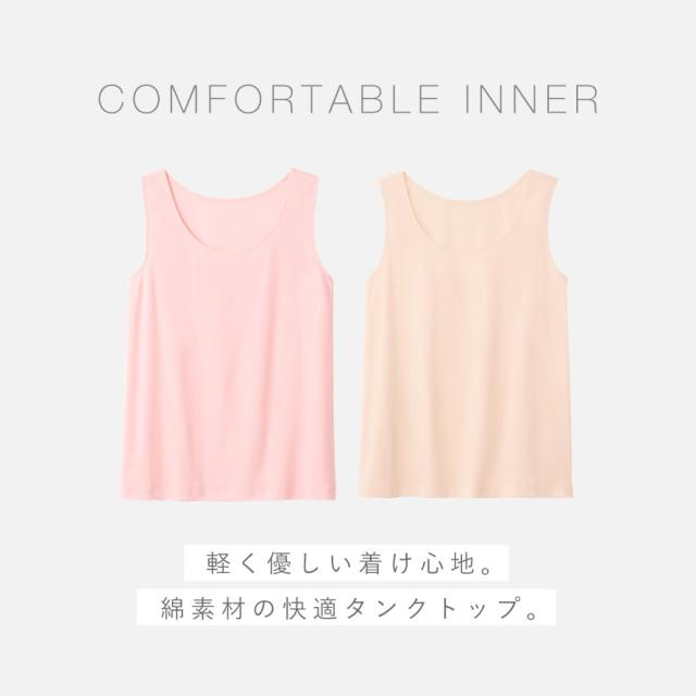 タンクトップ 綿100 インナー レディース 衿ぐり 広め ゆったり ベージュ ピンク 大きいサイズ 綿100%快適タンクトップ