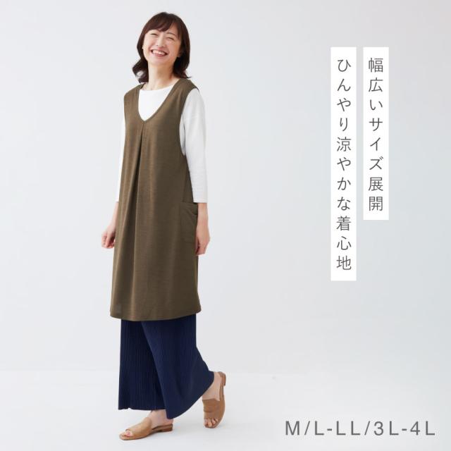 ジャンパースカート 50代 ロング,ジャンパースカート 大きいサイズ,ジャンパースカート 大人,ワンピース,ジャンパースカート,ジャンスカ,夏用,吸水速乾,速乾,乾きやすい,接触冷感,冷感,冷たい,ひんやり,クール,涼しい,vネック,クルーネック,2way,Aライン,ポケット,ポケット付き,左右,薄手,薄い,シワになりにくい,さらさら,サラサラ,サラっと,さらっとしている,さらり,サラリ,爽やか,さわやか,べたつかない,ベタつかない,体型カバー,着痩せ,細見え,お尻,腰回り,カバー,お尻が隠れる,オリエンタルブルー,ターコイズブルー,ブルー,青,オリーブブラウン,ブラウン,茶色,M,L,LL,3L,4L,大人,レディース,女性,30代,40代,50代,60代,70代,80代,ミセス,ミセスファッション,おしゃれ,お洒落,オシャレ,かわいい,可愛い,