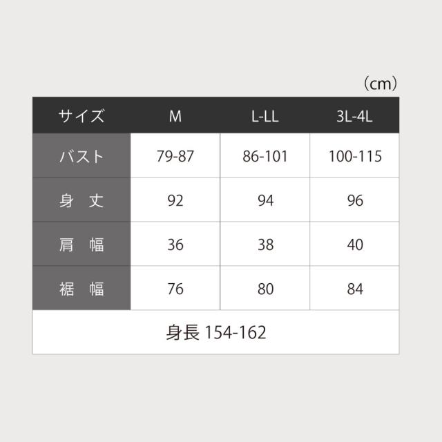 ■サイズ:身長/154-162、バストM/79-87、L-LL/86-101、3L-4L/100-115cm
