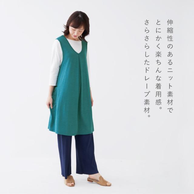 伸縮性のあるニット素材でとにかく楽ちんな着用感。さらさらしたドレープ素材で気持ち良い肌ざわりです。シワになりにくい生地でお手入れ楽ちん。