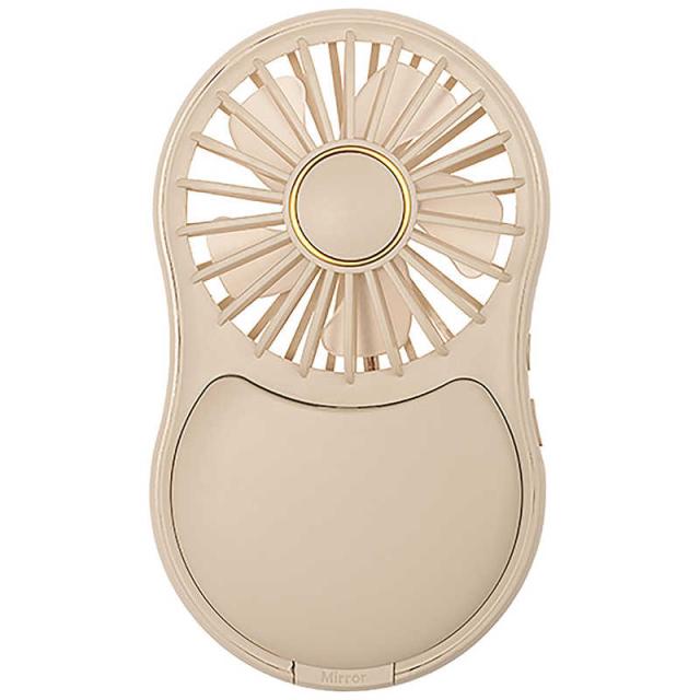 NAKAGAMI おでかけ先でもチェックできるライトミラー付きファン ベージュ YNG-MF180-BE