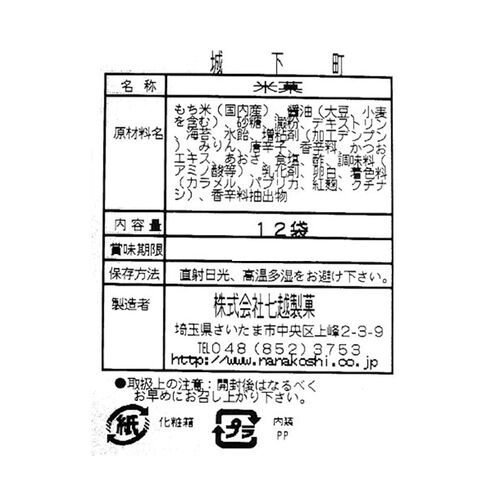送料無料 埼玉 七越製菓 城下町 12袋 せんべい 煎餅 和菓子 スイーツ 内祝 誕生日 プレゼント 誕生日プレゼント お菓子 お取り寄せ 送料込み