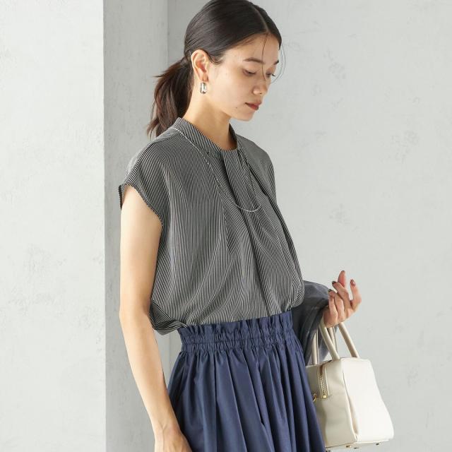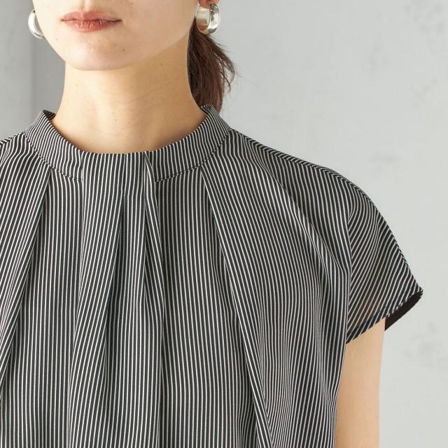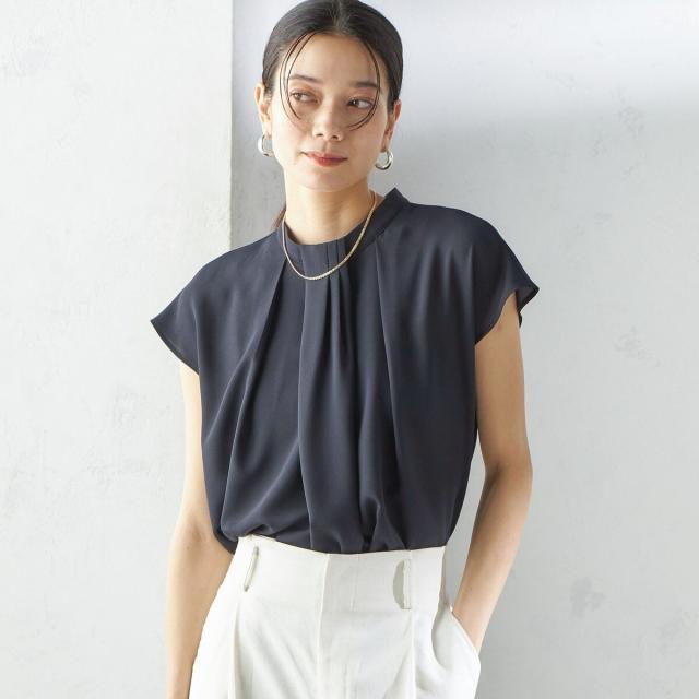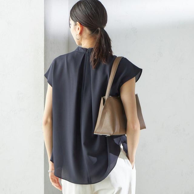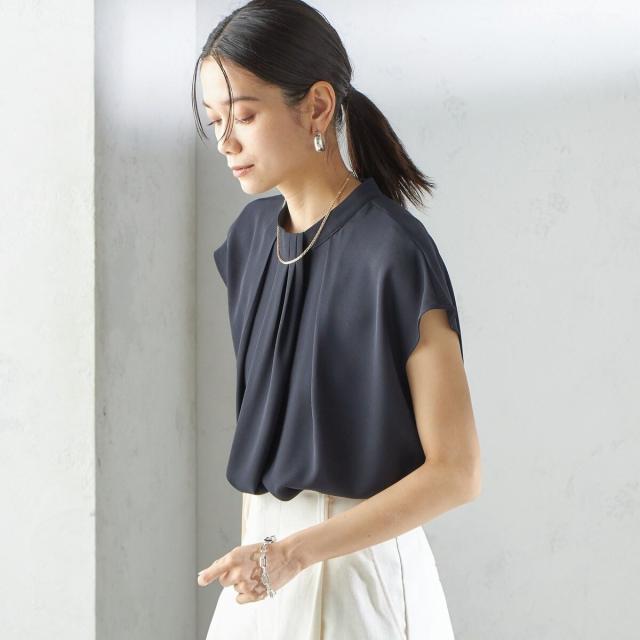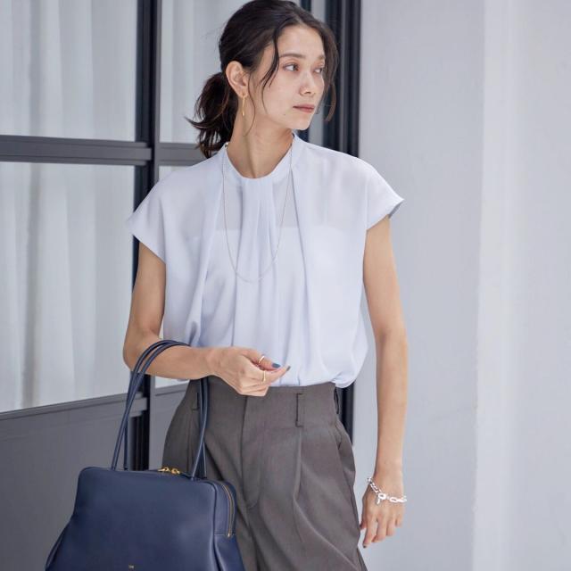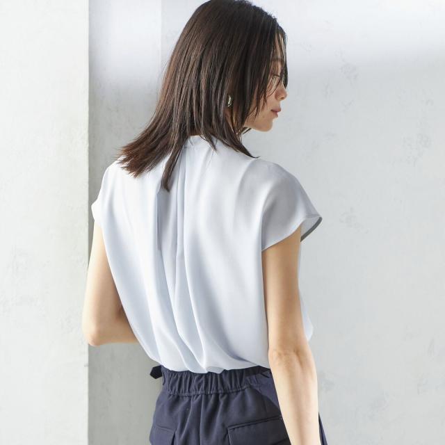 首元からすっと落ちるタックタイがボウタイ見えするブラウスで、着用するだけで華やかな印象を演出します。