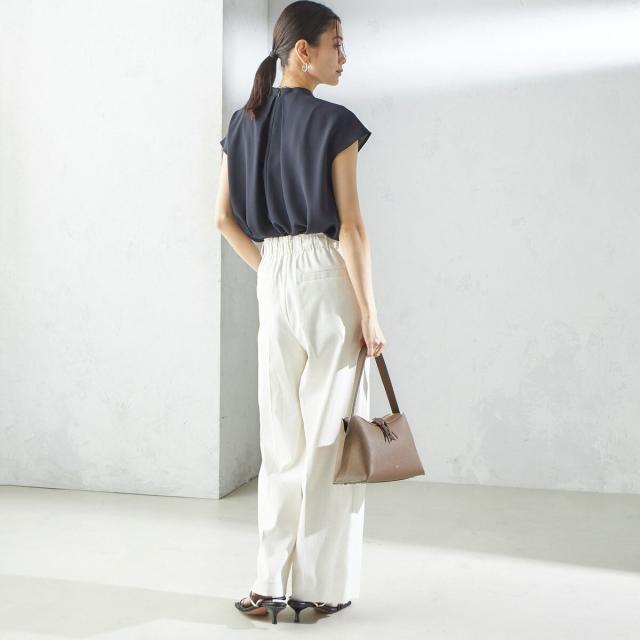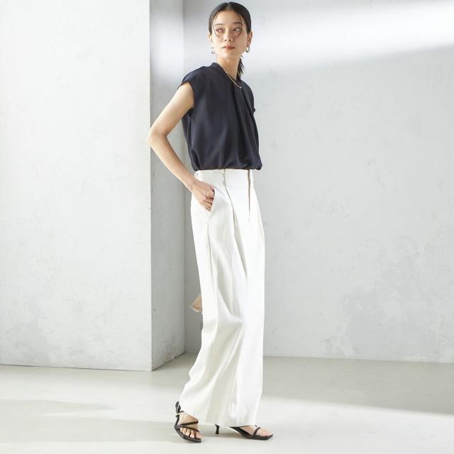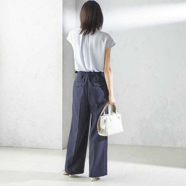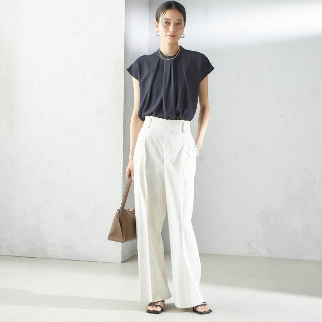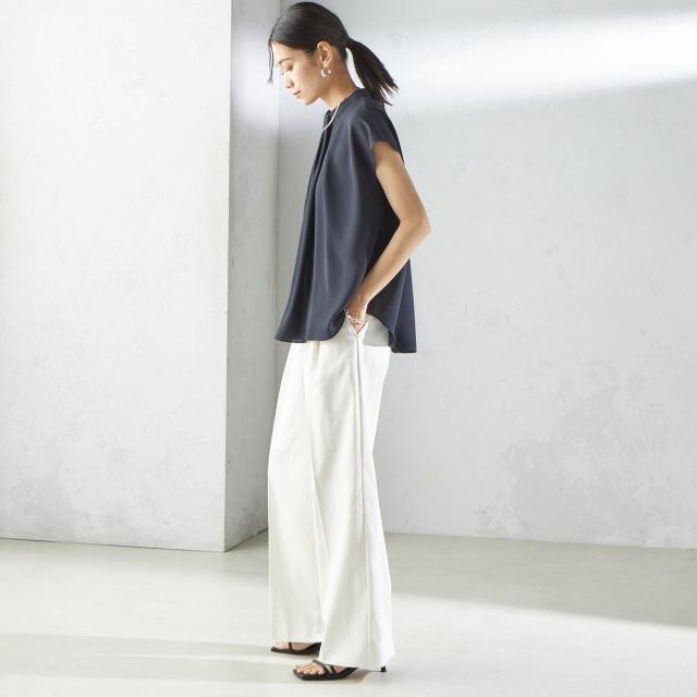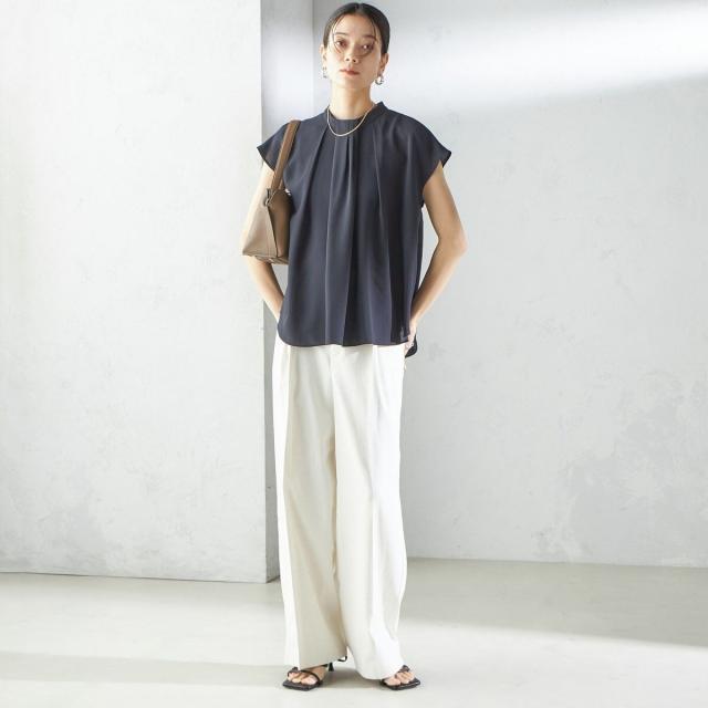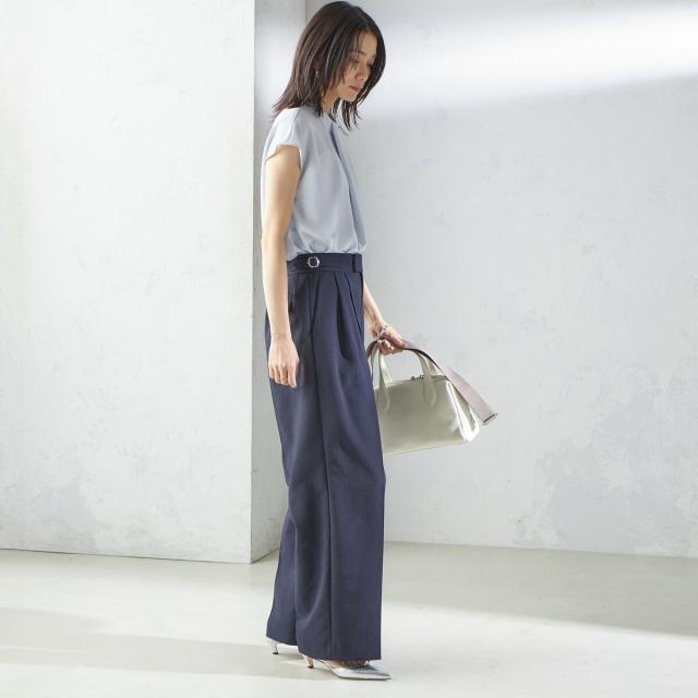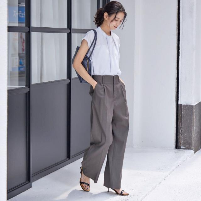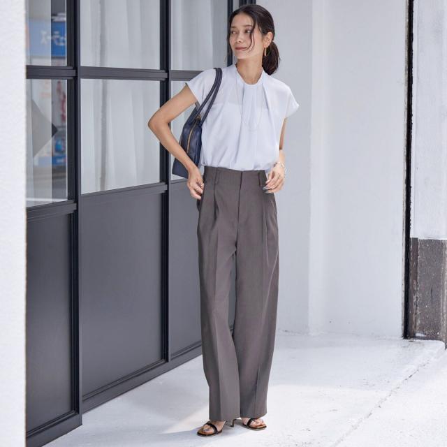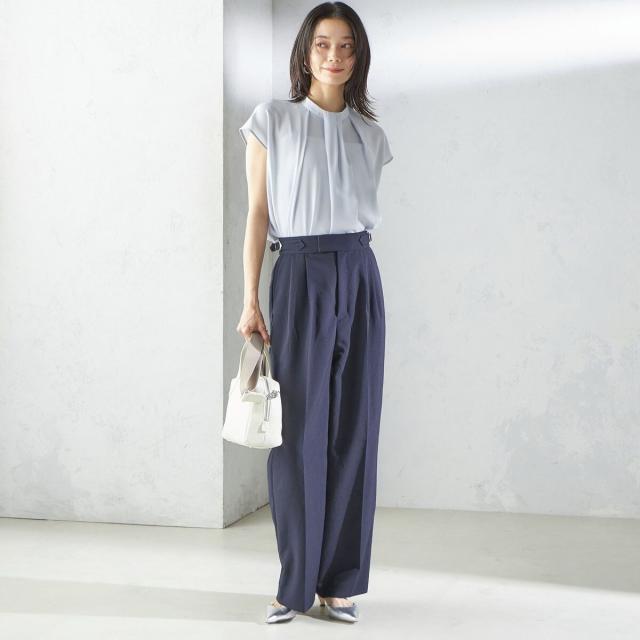 ビジネスシーンだけではなく、ゆったり感のあるパンツやきれいめなスカートなどと合わせて、女性らしいカジュアルスタイルもお楽しみいただけます。