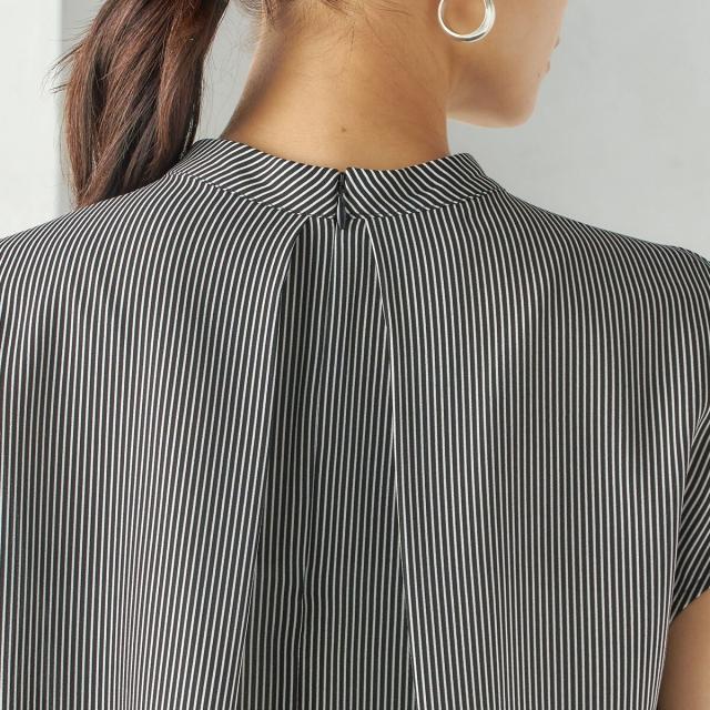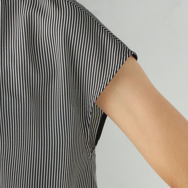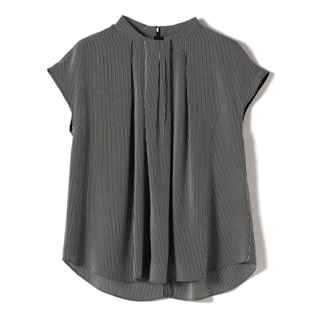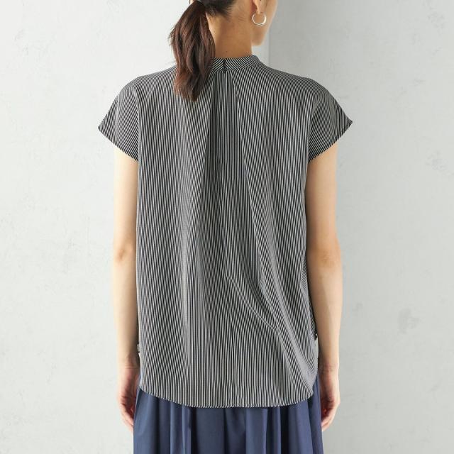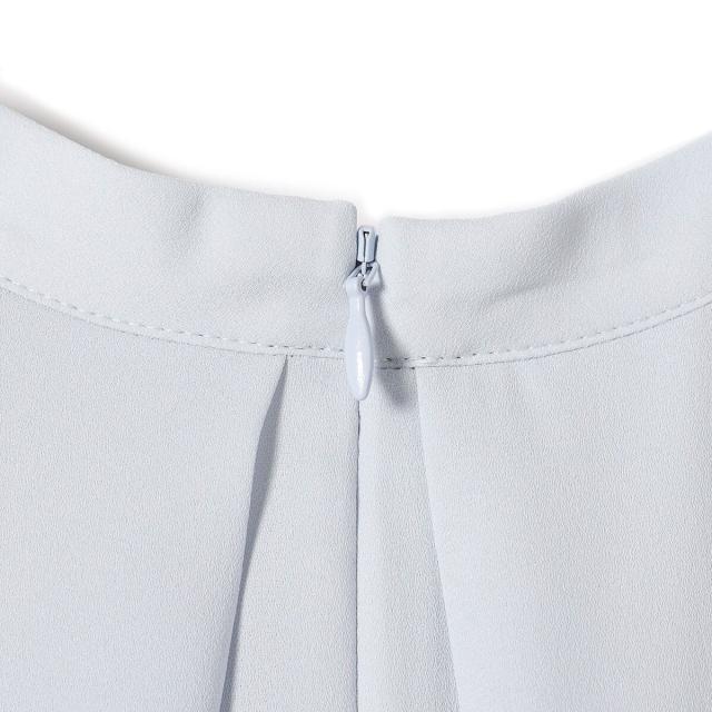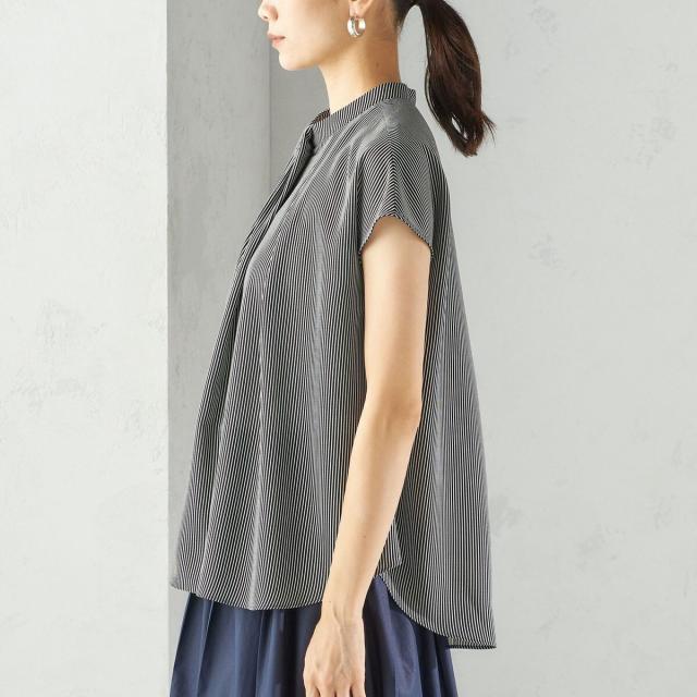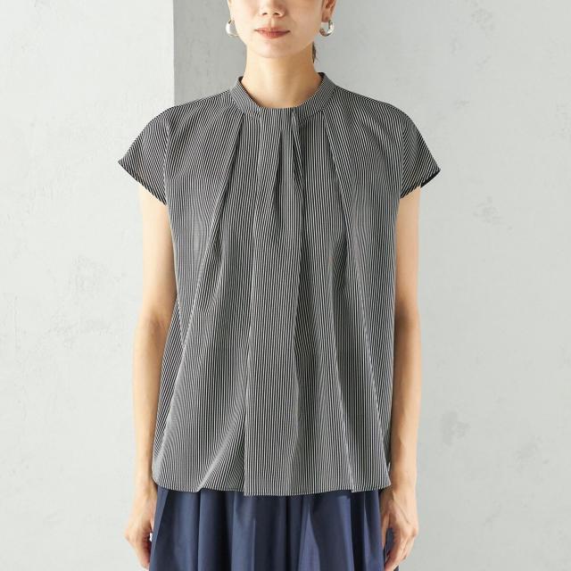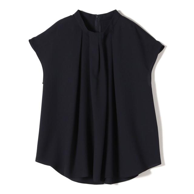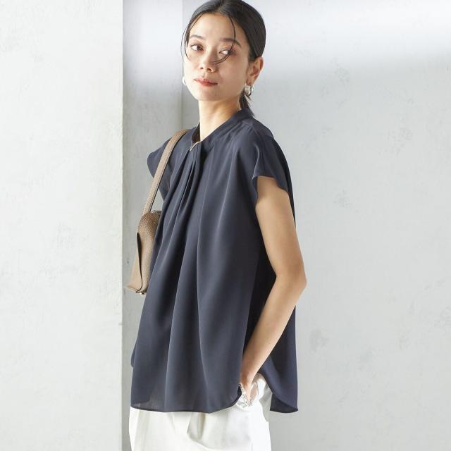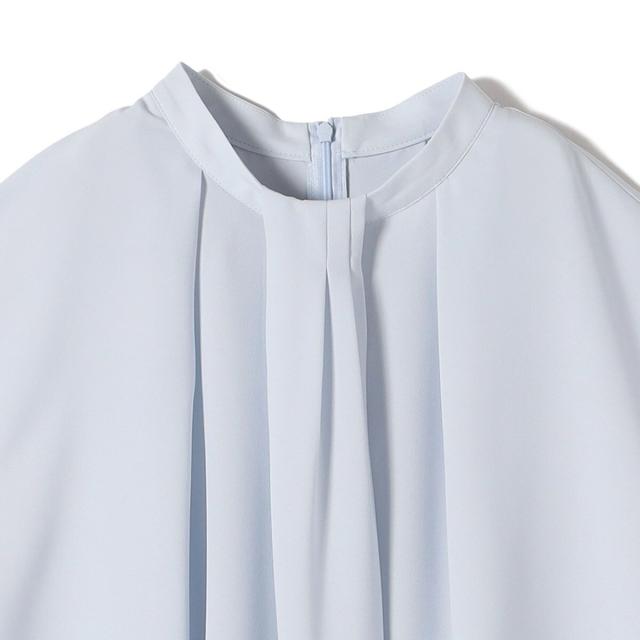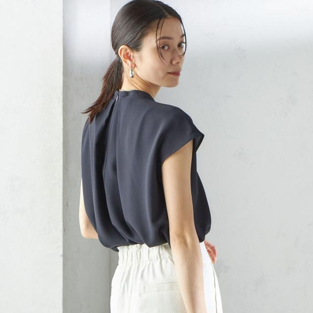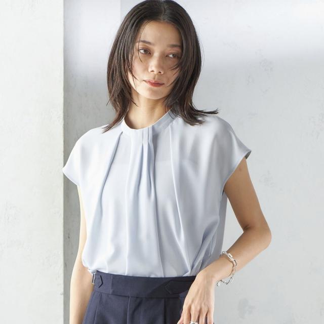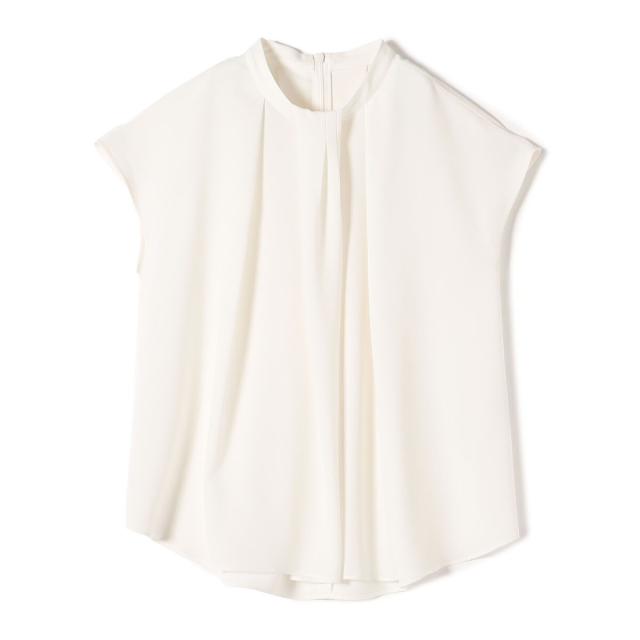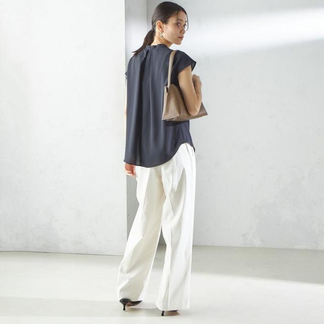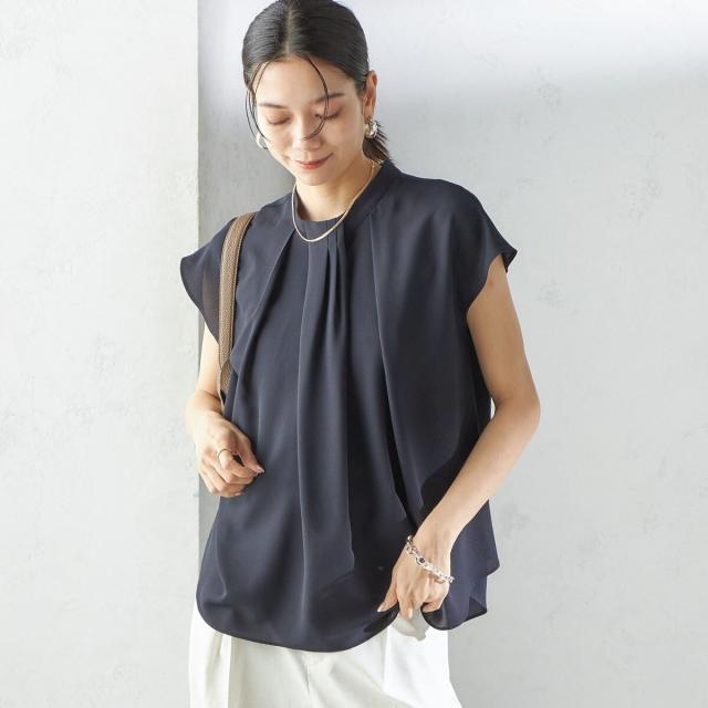 ジャケットのインナーとしても襟元のデザインが際立ち、清楚で洗練された印象を添えてくれる一枚です。