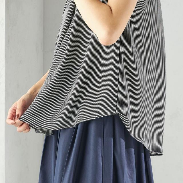 たっぷりと生地を使った美しいドレープがエレガントな印象を与えつつ、見た目以上のゆったりとした着心地に。