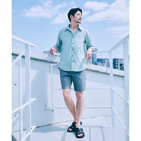 ちょっとした織りとしてもメインとしても夏場に重宝するアイテムです。スラックス合わせのきれい目なスタイリングから、カジュアルパンツ、ショーツなどのアクティブなボトムとも相性がよくコーディネートの幅を広げてくれます。同素材のカプリシャツ(品番:71509710003)もございます。
