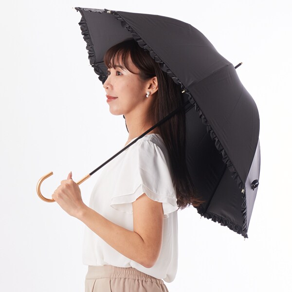 裾部分のフリルが女性らしさを引き立ててくれる長傘です。