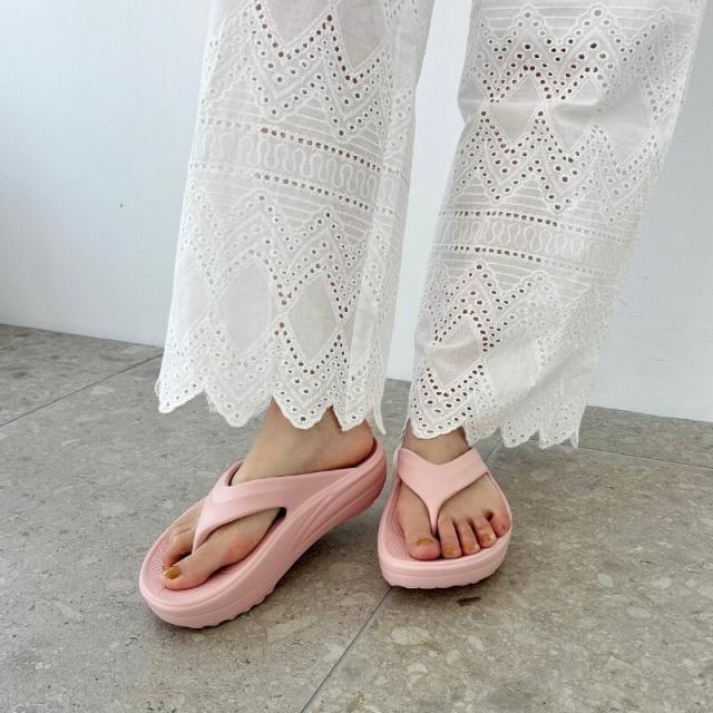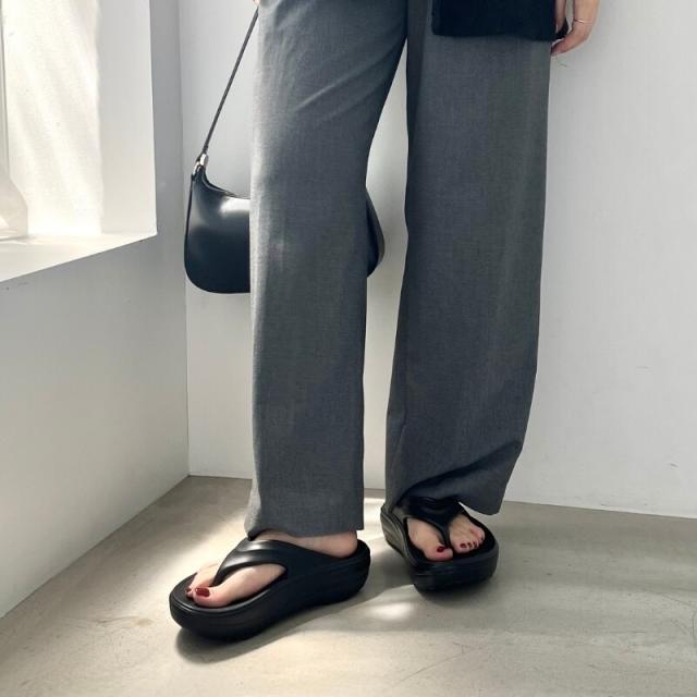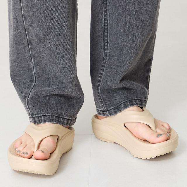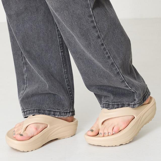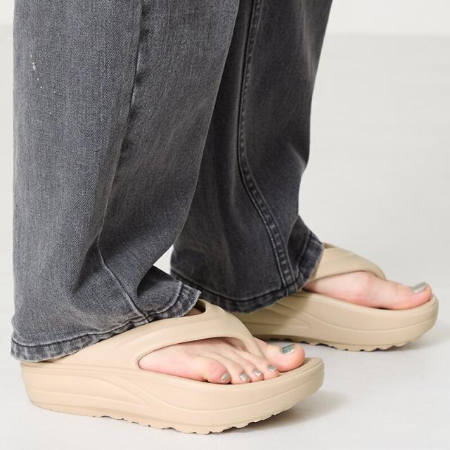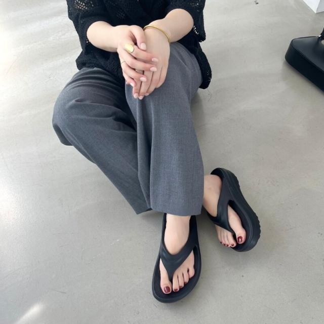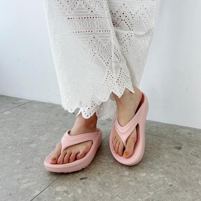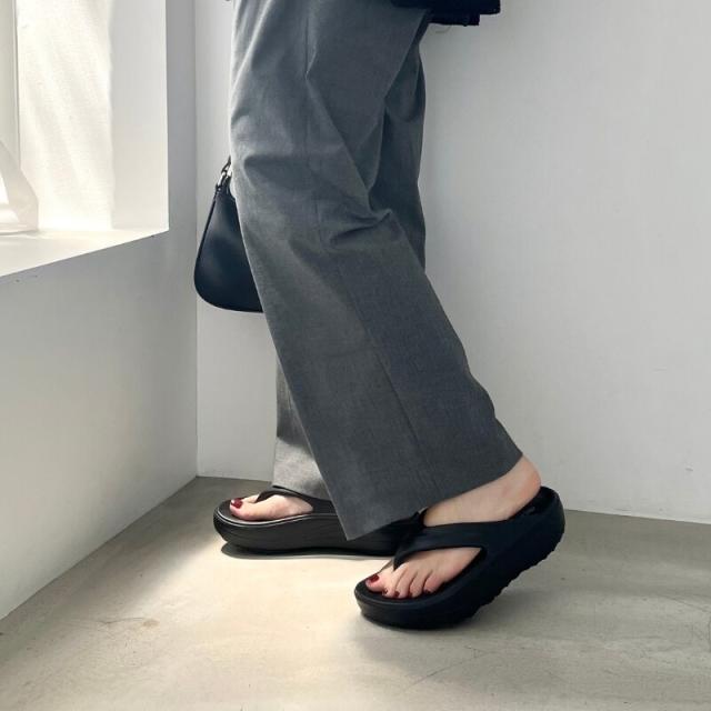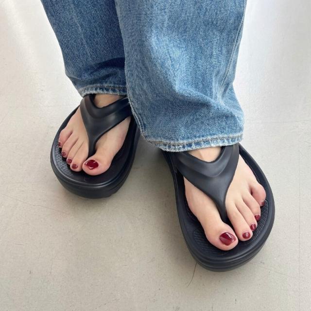 デイリー使いにぴったりのトングサンダルが厚底ソールで登場。厚底でも、少しつま先が沿った作りで歩きやすさもしっかりキープ。