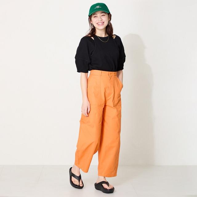 飾りのないシンプルなデザインに、豊富なカラーバリエーションで夏のお出かけに重宝するアイテム。