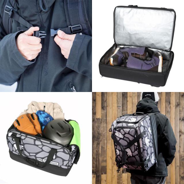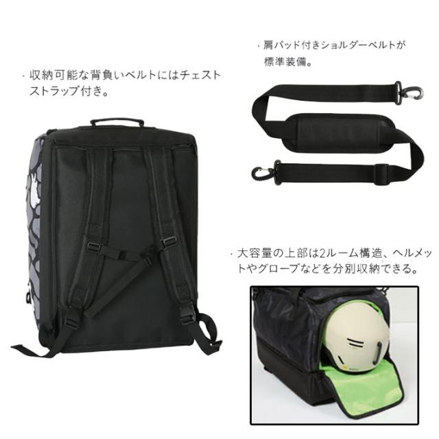 ・下部にはブーツが分別収納可能、パッド入りで内部の素材は水、汚れに強い素材。