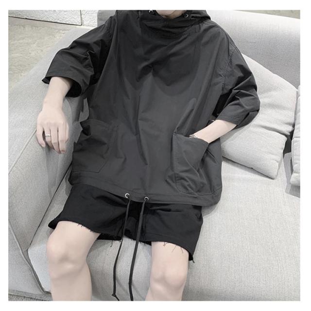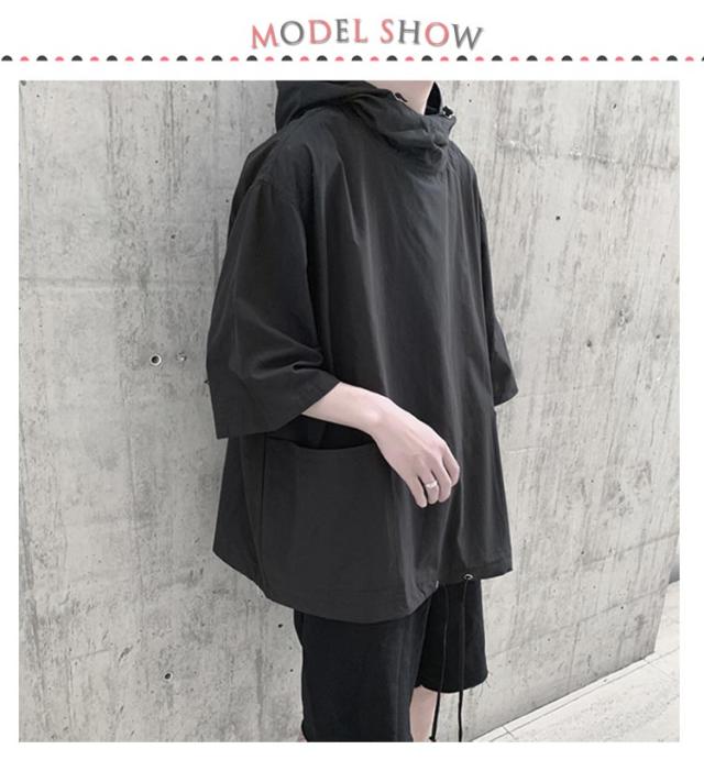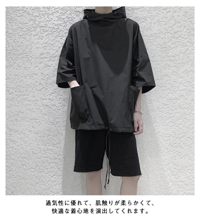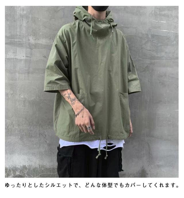 パーカー 7分袖 メンズ トップス ビッグシルエット オーバーサイズ 体型カバー ゆったり フード付き リラックス