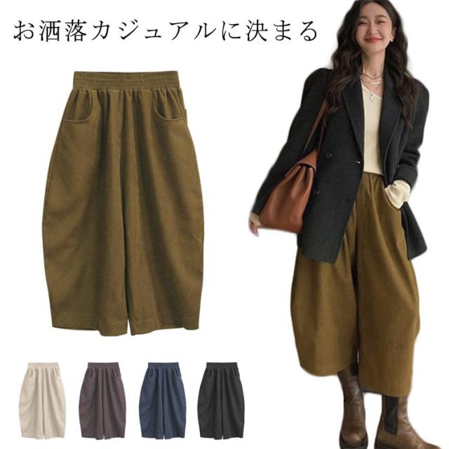 マニッシュパンツ おしゃれ チノパン バルーンパンツ ワイドパンツ レディース 体型カバー パンツ 春パンツ 秋パンツ ウエストゴム 八分丈 チノ パンツ サルエル