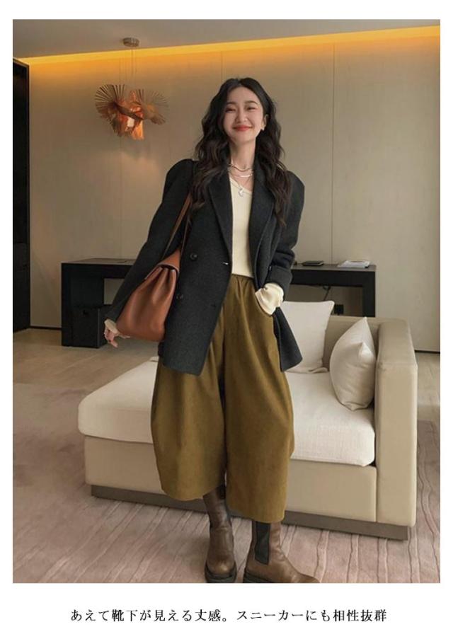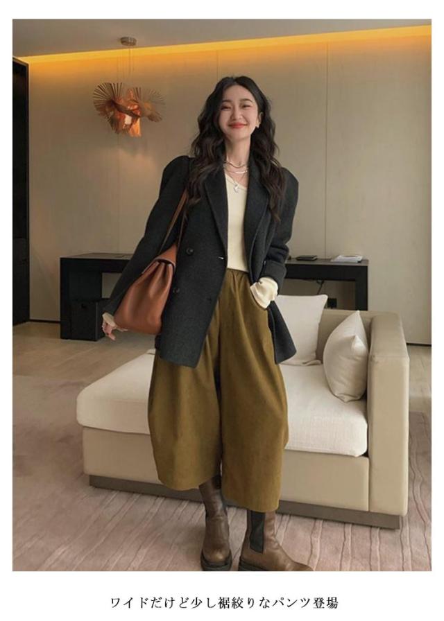 | お洒落カジュアルに決まる ワイドだけど少し裾絞りなパンツ登場 あえて靴下が見える丈感。スニーカーにも相性抜群 | |