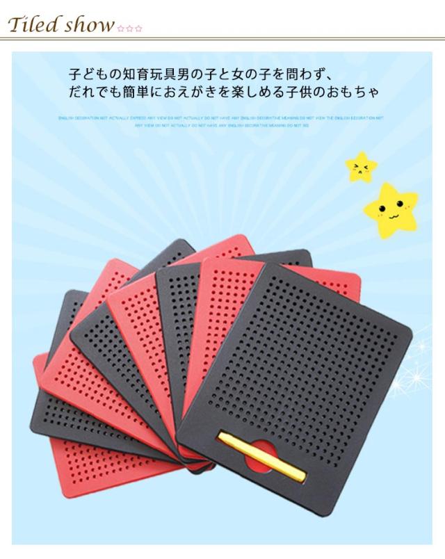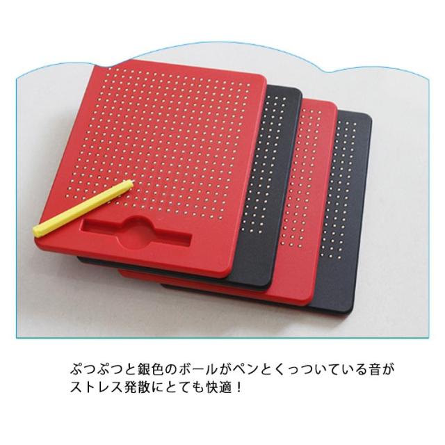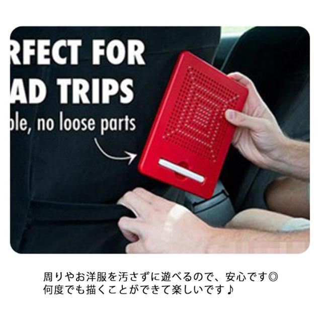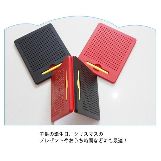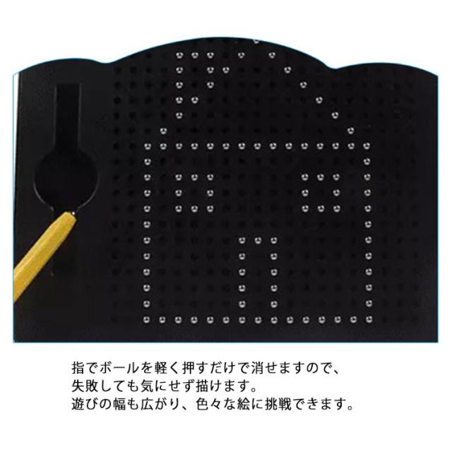 | 子どもの知育玩具男の子と女の子を問わず、だれでも簡単におえがきを楽しめる子供のおもちゃ 想像力を使って絵、形、文字、数字を描くことができます! プラスティック製のボードに、磁石内蔵ペンで遊びます。 付属のマグネットペンでボードをなぞって中のボール(鉄球)を引き上げ、字や形、絵を描いてみよう! 指でボールを軽く押すだけで消せますので、失敗しても気にせず描けます。 遊びの幅も広がり、色々な絵に挑戦できます。 周りやお洋服を汚さずに遊べるので、安心です◎ 何度でも描くことができて楽しいです♪ ぷつぷつと銀色のボールがペンとくっついている音がストレス発散にとても快適! 子供の誕生日、クリスマスのプレゼントやおうち時間などにも最適! | |