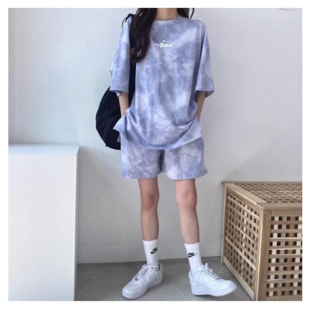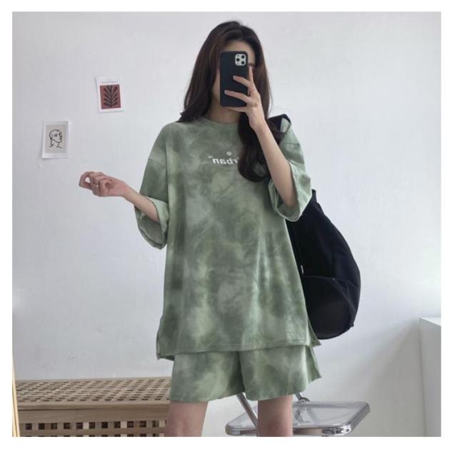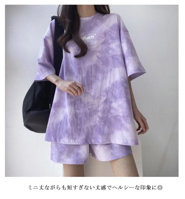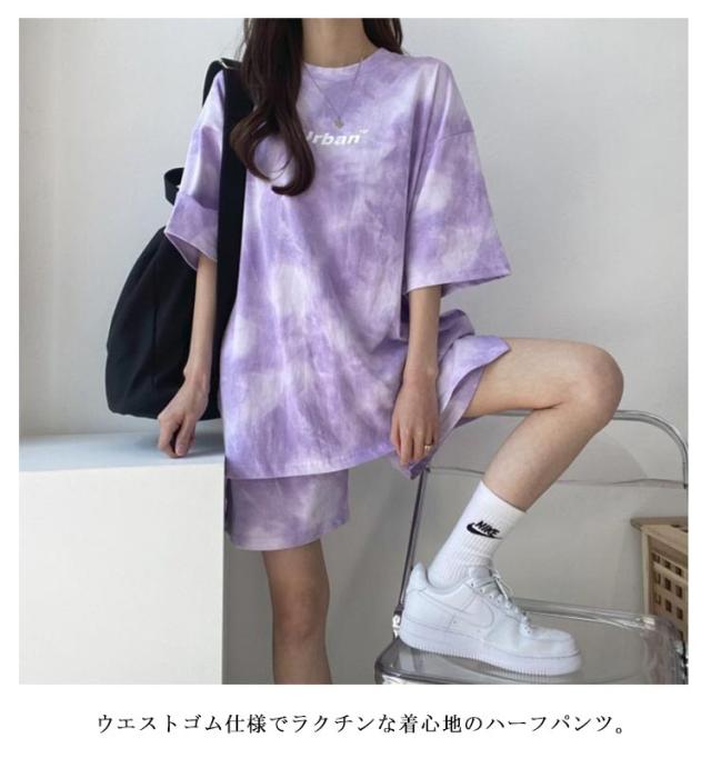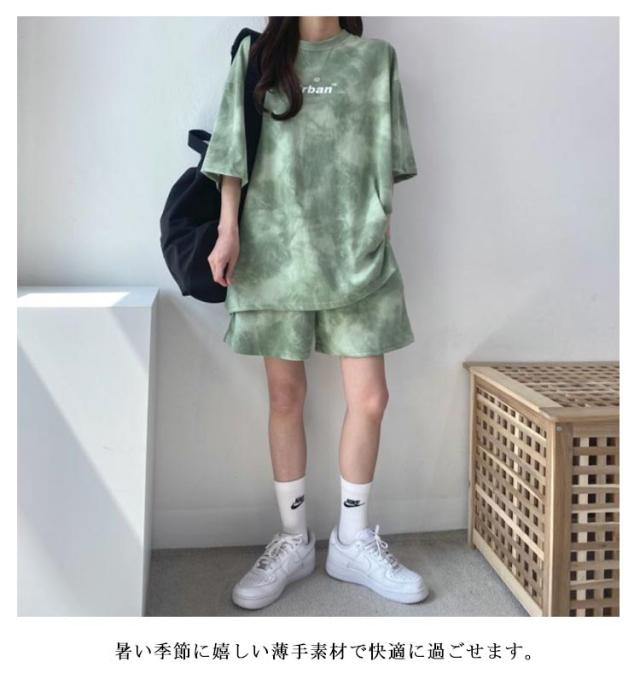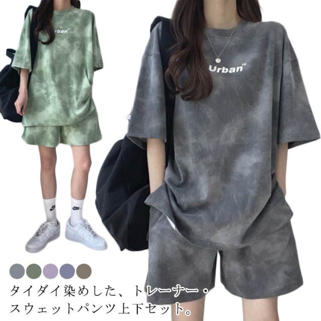 パンツ 春 夏 セットアップ トップス タイダイ染め ルームウェア Tシャツ 部屋着 ジャージ レディース カットソー ゆったり 薄手 ショートパンツ 春夏 半袖 スウェット 短パン トレーナー ナイトウェア 寝巻き 大人 カジュアル パジャマ ダンス衣装 韓国