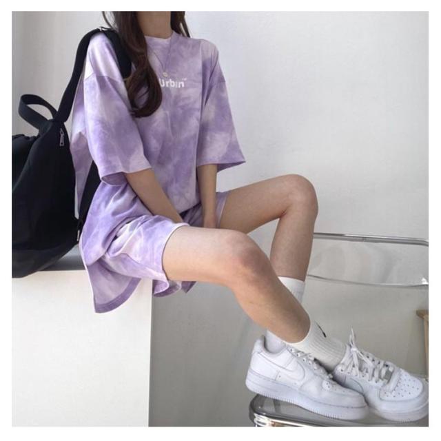 | タイダイ染めした、トレーナー・スウェットパンツ上下セット。 肩落ちシルエットから肘が隠れるぐらいの袖丈感が華奢見えする。 ゆったりとした身幅やお尻が隠れるくらいの丈感がゆるっとオーバーサイズな着こなしを演出。 暑い季節に嬉しい薄手素材で快適に過ごせます。 ウエストゴム仕様でラクチンな着心地のハーフパンツ。 ミニ丈ながらも短すぎない丈感でヘルシーな印象に◎ ルームウェアにはもちろんアウトドアにもおすすめです | |