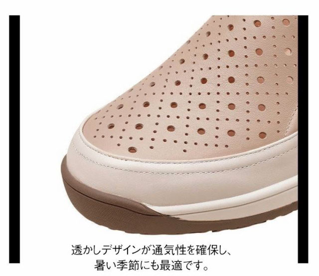 厚底 ママシューズ スリッポンタイプ 厚底シューズ 歩きやすい 4cm レザーシューズ 柔らかい 透かし 春夏 カジュアル スリッポンシューズ 美脚 疲れにくい 送料無料