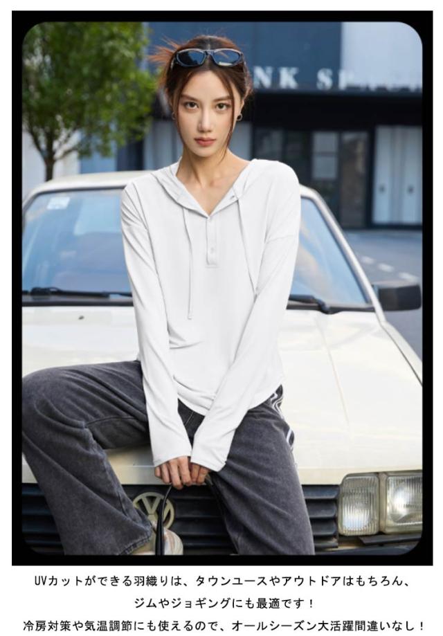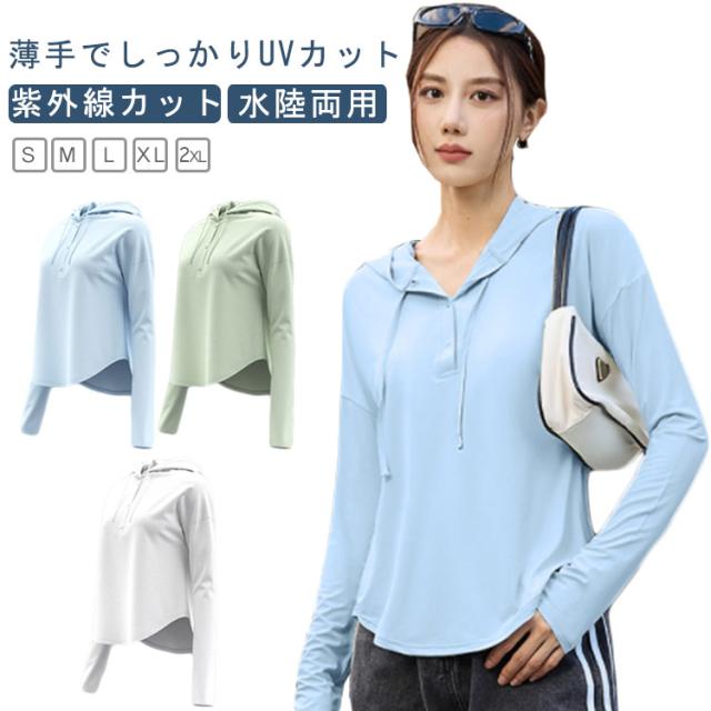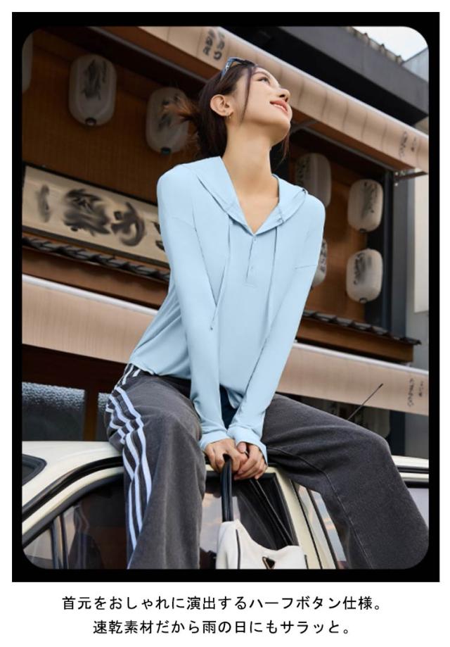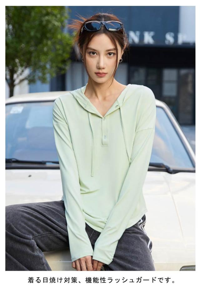 パーカー 長袖 ラッシュガード フード付き ハーフボタン Tシャツ カットソー ゆったり 紫外線カット ラッシュガード 長袖 夏 薄手 トップス シンプル フーディーパーカー 紫外線対策 日焼け予防 体型カバー プール 海 海水浴 ヨガ おしゃれ 水陸両用