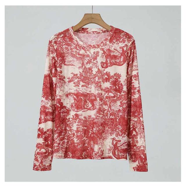 長袖 Tシャツ ロング ロンT カットソー レディース タイダイ 染め 風 プリント 柄 総柄 長袖Tシャツ アジアン エスニック ファッション 個性的 カットソー トップス ティーシャツ プリントTシャツ 丸首 クルーネック 肌着 涼しい カジュアル