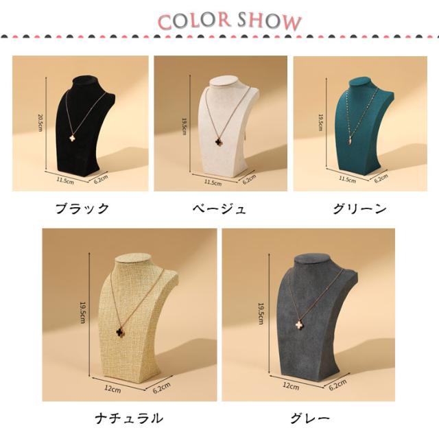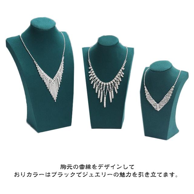 | 【ネックレススタンド】【3サイズ】 アクセサリーを綺麗に展示できるディスプレイトルソーです。 ネックレス・チョーカー・ペンダントだけでなくイヤリングもかける事ができます。 胸元の曲線をデザインしておりカラーはブラックでジュエリーの魅力を引き立てます。 ベルベット、PUレザー地が商品をより魅力的に引き立て高級感が増します。 店舗の展示はもちろん、ネットショップ・ネットオークションの写真撮影やご自宅でのジュエリーディスプレイなど様々な用途にオススメです。 かけるだけで綺麗にディスプレイできるのでご自宅での普段使いにもピッタリです。 展示会やフリーマーケットはもちろん、撮影用のアイテムとしてもご使用いただけます。 | |