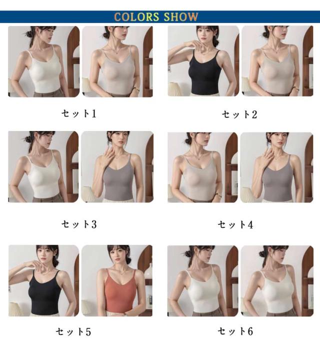 2枚セット ノンワイヤー カップ付きタンクトップ シームレス レディース インナー ブラトップ カップ入 ブラトップ キャミソール 吸汗速乾 インナー ナイトブラ インナーシャツ ブラキャミ ブラキャミソール カジュアル 下着 肌着 カップ ブラ 抗菌防臭 送料無料