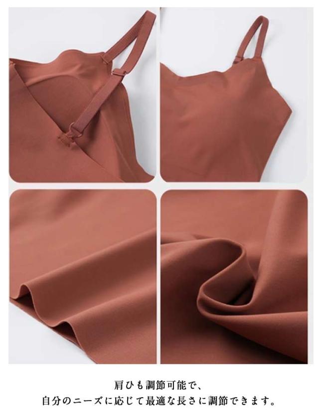 | レディース用タンクトップタイプのブラトップです。 シームレスでお洋服に響きにくいのが嬉しいポイント クール素材なので、ひんやりとして、さらりとした柔らかい肌触りです。 肩ひも調節可能で、自分のニーズに応じて最適な長さに調節できます。 体にぴったり合うのは、いつ着ても束縛感じゃない、着心地がもっと快適です。 凸凹パッドが内蔵されているので自然でふつくらボリュームのある綺麗なバストラインに。 | |