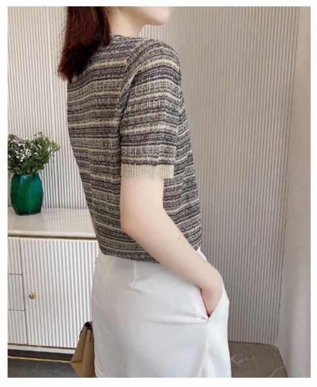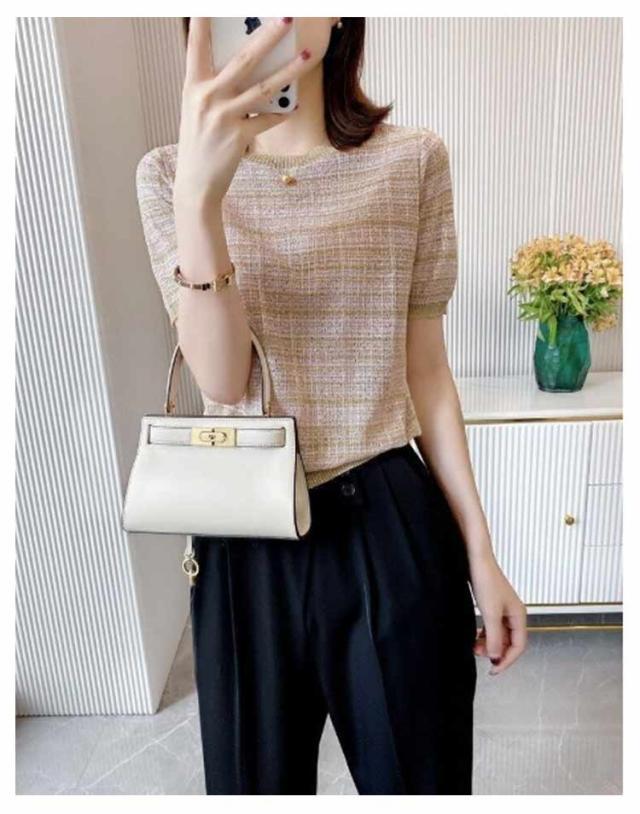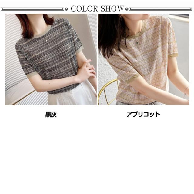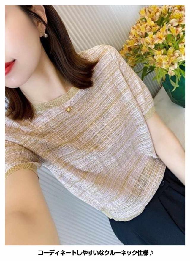 トップス シャツ ブラウス 半袖 ラウンドネック ツイードデザイン かわいい 大人女性 可愛い きれいめ シンプル カジュアル 上品 おしゃれ こなれ感 トップス ガーリー エレガント 主役級 夏 春 20代 30代 40代 デート お出かけ 休日 イベント 旅行 フリーサイズ 送料無料