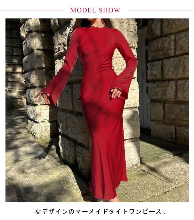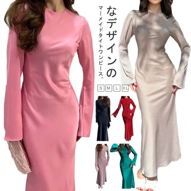 マーメイドワンピース 上品 マーメイドワンピース マーメイドドレス ロングワンピース パーティーワンピース ロング丈 ボリュームスリーブ フレア袖 おしゃれ 大人 レディース フォーマル かわいい 二次会 結婚式 お呼ばれ