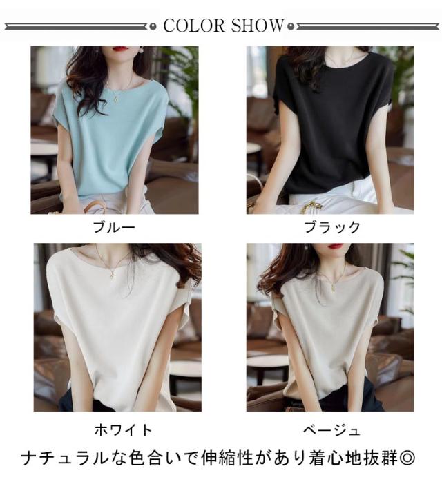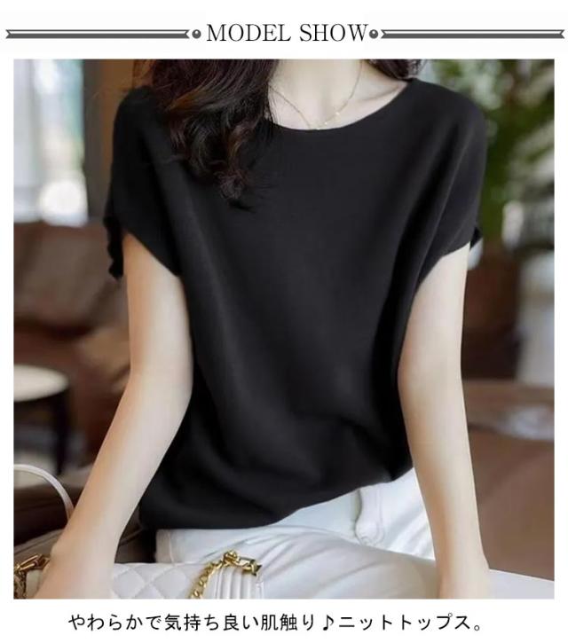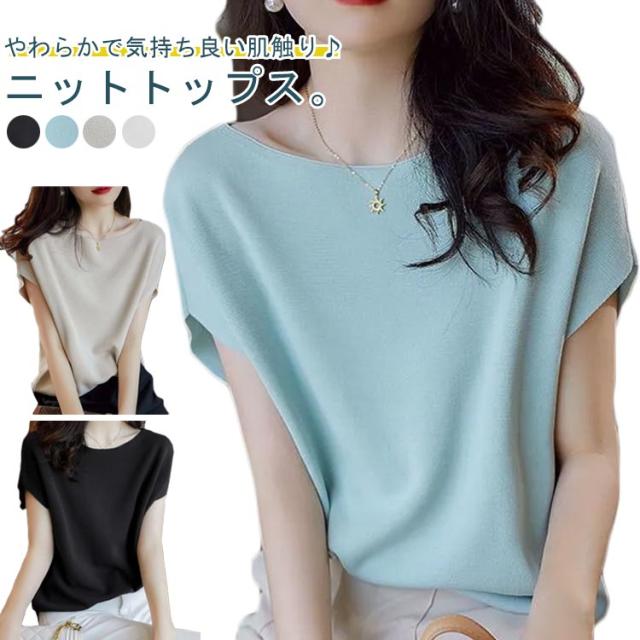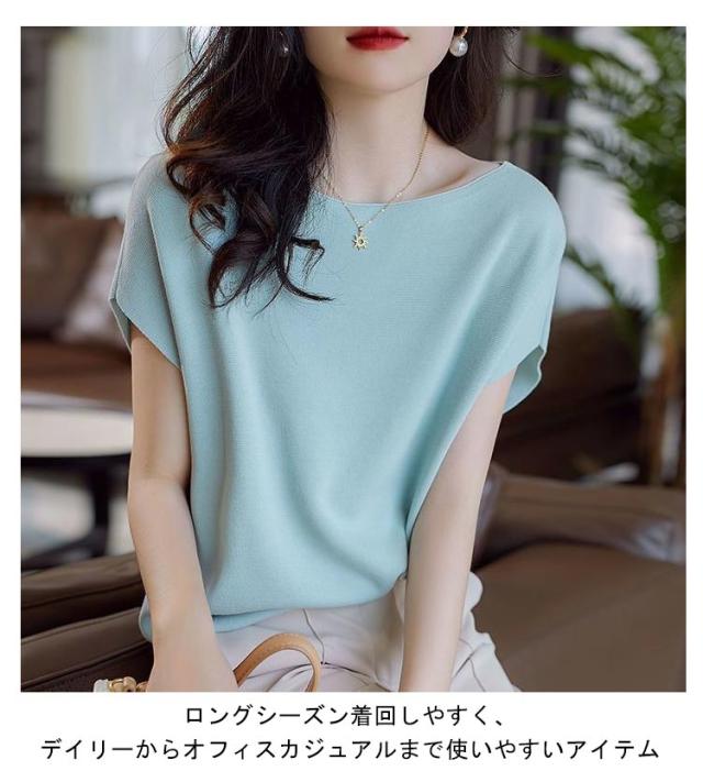 | やわらかで気持ち良い肌触り♪ニットトップス。 さらっとした柔らかなニット素材で着心地も抜群!Tシャツと同じくらい着回し力高いですが、Tシャツよりオシャレ度が上がる肌触り良いサマーニットです ナチュラルな色合いで伸縮性があり着心地抜群◎ ロングシーズン着回しやすく、デイリーからオフィスカジュアルまで使いやすいアイテム | |