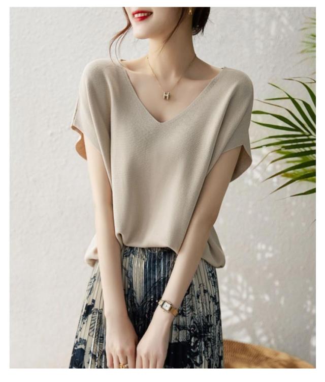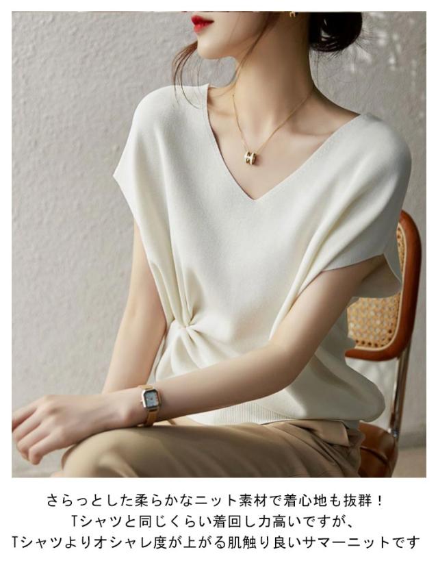 サマー ニット レディース ニット 春夏 サマーニット トップス 半袖 薄手 プルオーバー リブニット カットソー Vネック ニット ブラウス 洗えるニット 柔らか 体型カバー 無地 プルオーバー 着痩せ エレガント 肌触りよい 可愛い セーター 韓国 送料無料