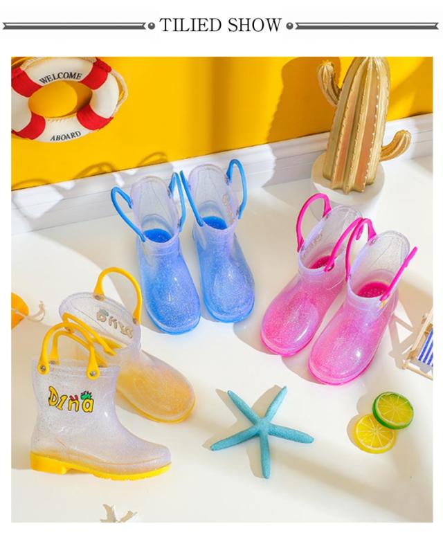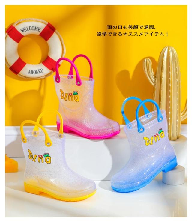 女の子 レインシューズ 長靴 長靴 男の子 長靴 子供靴 ハンドル付き 取手 ループ アニマル レインブーツ ベビー 雨具 クリア キラキラ かわいい おしゃれ 引っかけ 動物 持ち手 恐竜 レインシューズ 雨靴 防水