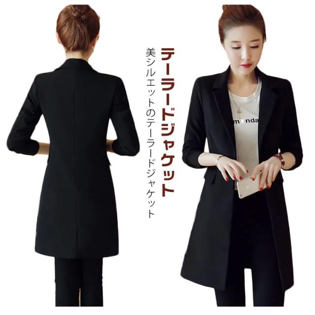 テーラードジャケット きれいめ テーラードジャケット 長袖 ライトアウター レディース Aライン テーラードジャケット 春ジャケット ロング丈 ブラック 大きいサイズ ロングテーラードジャケット オフィス ビジネス OL 通勤