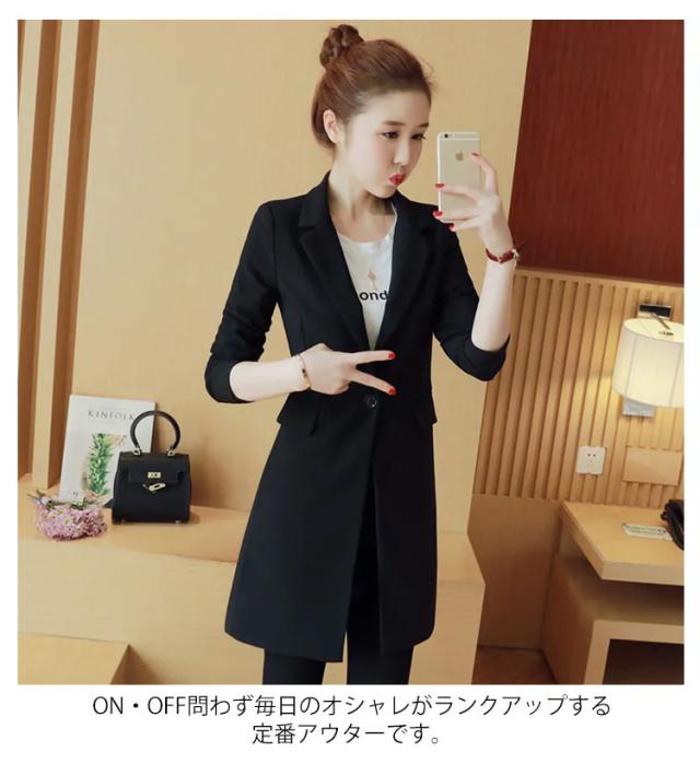 | 美シルエットのテーラードジャケット すっきりとしたロング丈なのですっきりとした縦ラインを強調できます。 柔らかくシワになりにくいポリエステル素材で羽織り心地は軽く、着心地も非常に良く仕上がっています。 フロントは1つボタンタイプでさっと羽織ることができます。 程よく抜け感もあるので仕事以外にもイベントやカジュアルコーデにも着回しできます。 ON・OFF問わず毎日のオシャレがランクアップする定番アウターです。 | |