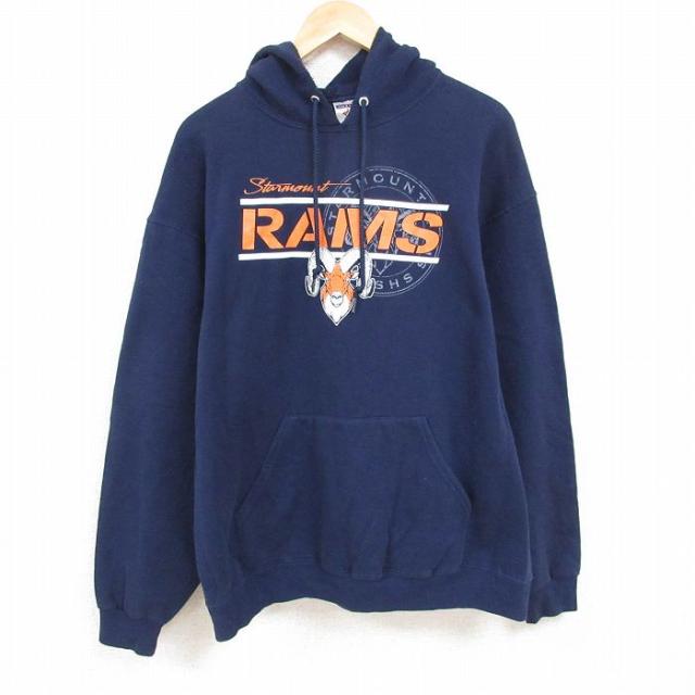 古着 長袖 スウェット パーカー メンズ BLOCK ISLAND 大きいサイズ 紺 ネイビー XLサイズ 中古 スエット トレーナー トップス 中古 古着