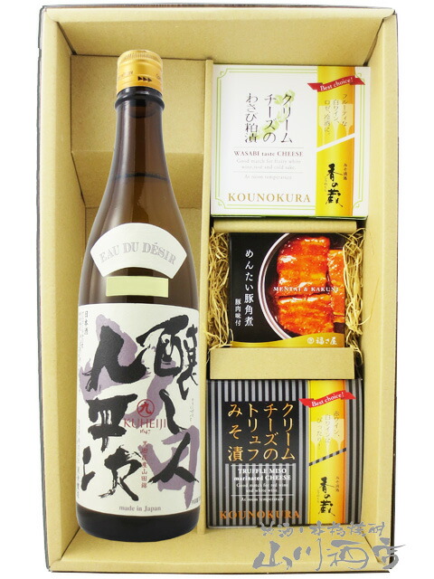 醸し人九平次かもしびとくへいじ純米大吟醸 山田錦 720ml 十 クリームチーズ2種 十 めんたい豚角煮セット 日本酒・おつまみセット 送料無料 商品番号 8331