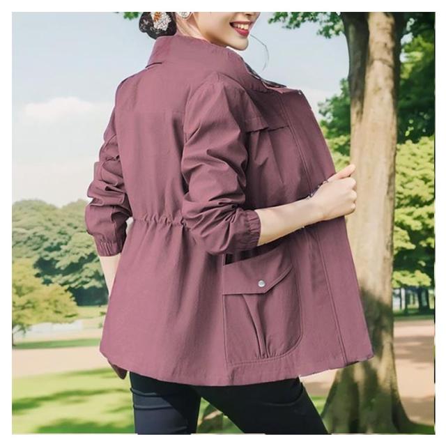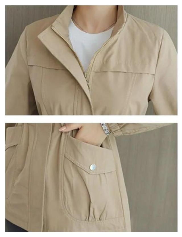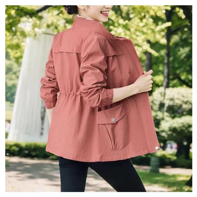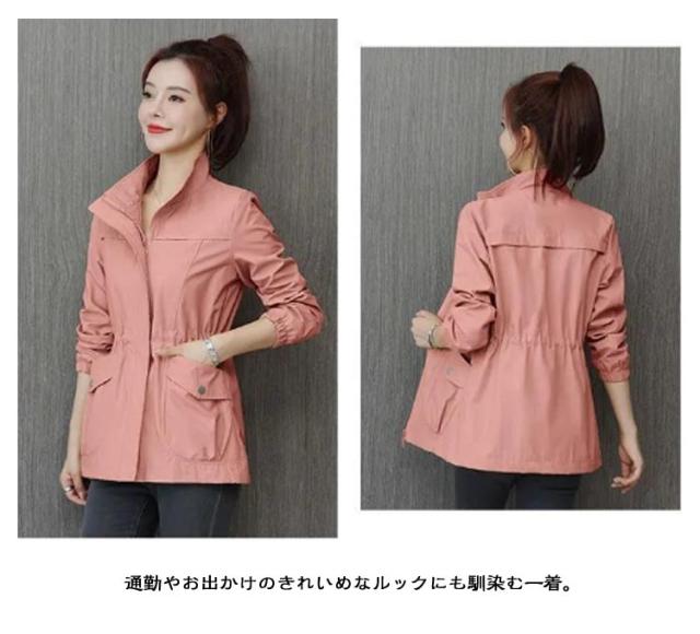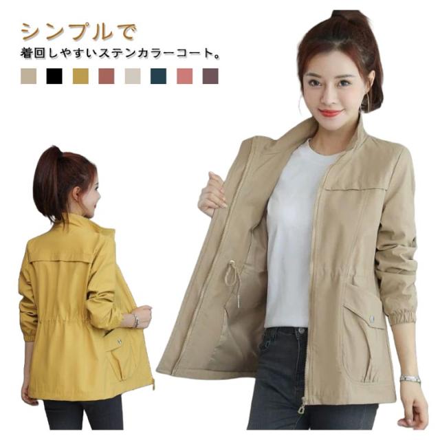 裏地付き 春 新作 ジャケット レディース 立ち襟 ウエストマーク ポケット スプリングコート アウター 前開き コート 長袖 無地 トップス カジュアル 着痩せ 大きいサイズ スプリングコート 通勤 OL オフィス 体型カバー 秋 大人 お洒落