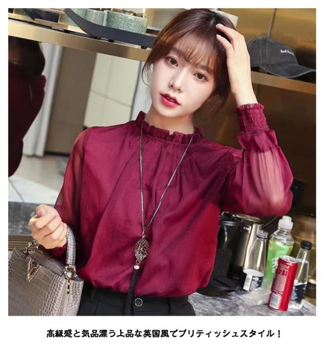 | ◆袖シースルー 立ち襟 フリル ブラウス◆ ●シンプルなのでデイリースタイルにも大活躍出来ちゃいます ●カッコいいデザインと上品さを両立した素敵な一枚です! ●コーディネート次第でビジネスシーンからカジュアルシーン、パーティーまでカバー ●高級感と気品漂う上品な英国風でブリティッシュスタイル! ●立ち襟で小顔効果とAラインシルエットが細身効果! ●ミセスからOLまた、30代 40代 50代 60代 に大人気です。 ●袖がレースデザインで大人 上品 できれいめスタイル。 ●シフォン素材で秋冬から春や夏まで対応可能。 ●OLや事務服、通勤やオフィスカジュアルまで。 ●お呼ばれやパーティー二次会、謝恩会に秋冬春に大活躍です。 | |