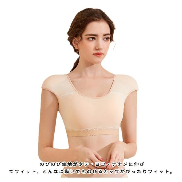 ブラジャー 補正下着 肩パッド付き ブラ レディース なで肩対策 ノンワイヤーブラ ナイトブラ Uネック Tシャツブラ インナー 背中 肩パッド付ブラ フレンチスリーブ 脇肉 脇高 肩対策 スッキリ 調整可能 無地 シンプル