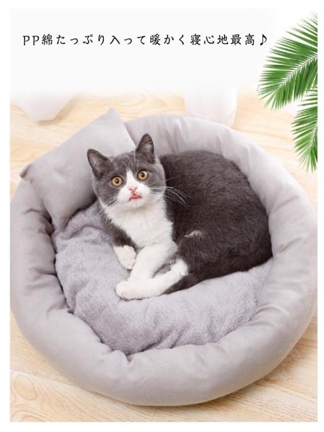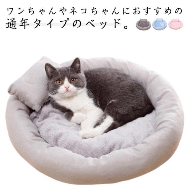 ペットベッド 犬 猫 いぬ ねこ クッション ベッド 枕付き 洗える 丸型 快適 ハウス 猫用ベッド 犬用ベッド 滑り止め付き ネコベッド パピー 子犬 子猫 あごのせ 春 夏 秋 冬 通年 寝床 小型犬 犬 オールシーズン かわいい