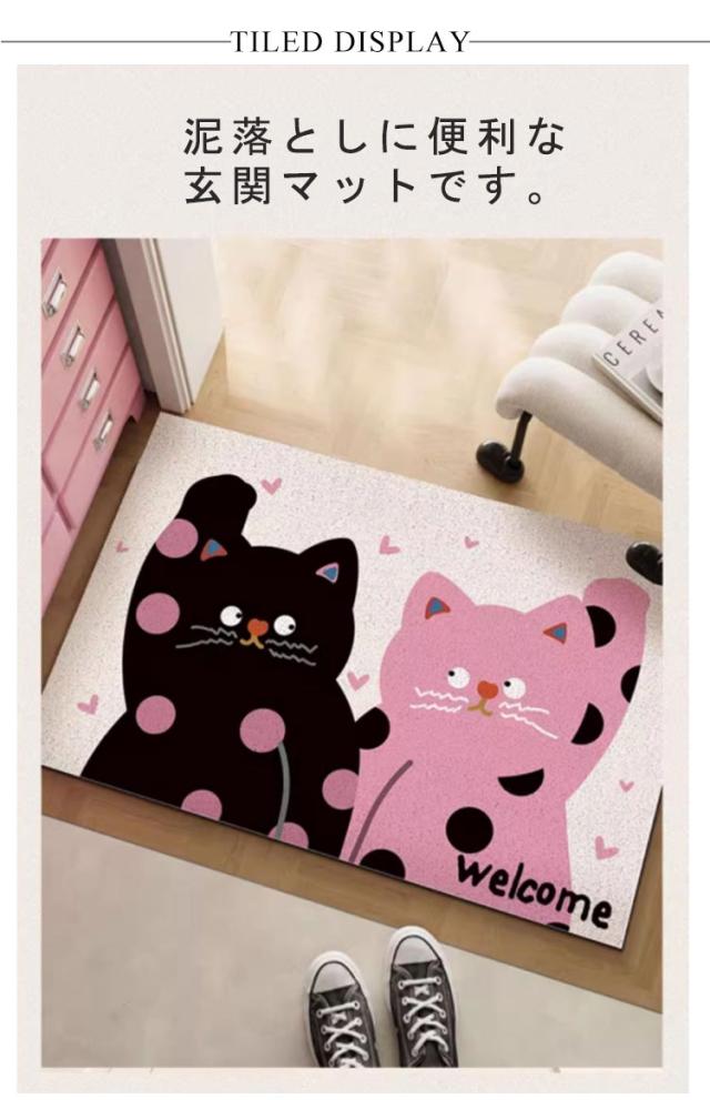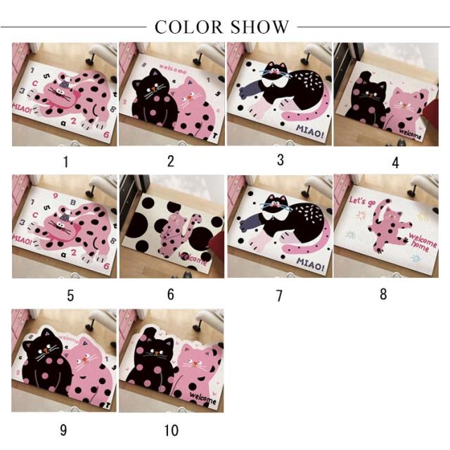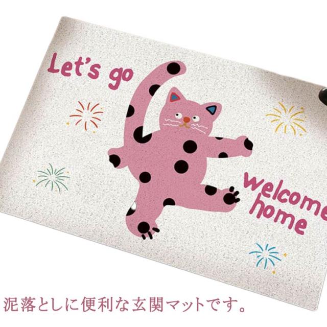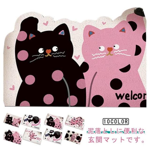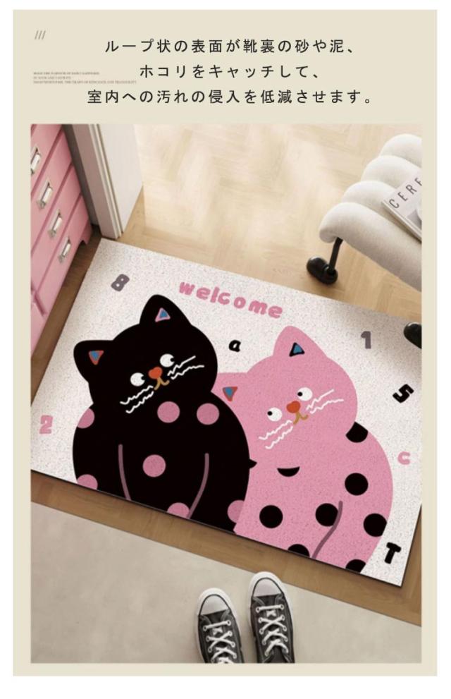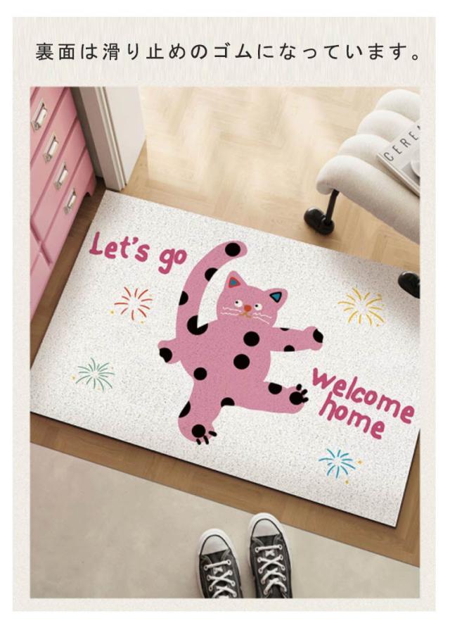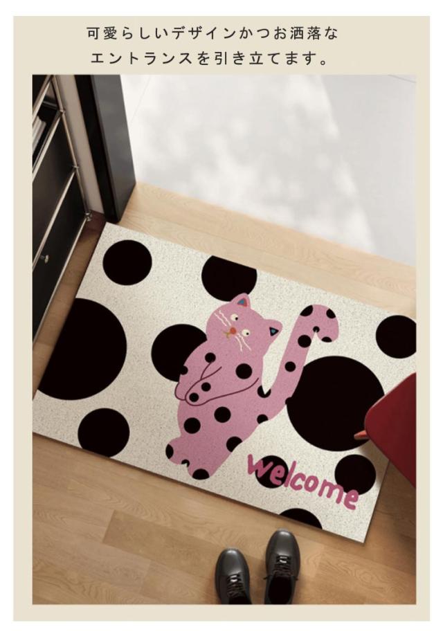 玄関マット 泥落とし 業務用 ドアマット 50×80cm ループマット カーペット 猫柄 キッチン用 屋内 室内用 フロア 屋外 マット オフィス用 家庭用 洗える お洒落 可愛い オールシーズン